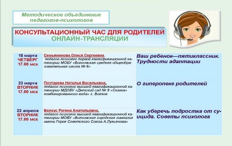 Методическое объединение педагогов -психологов Волховского муниципального района проводит для вас онлайн - консультации:
